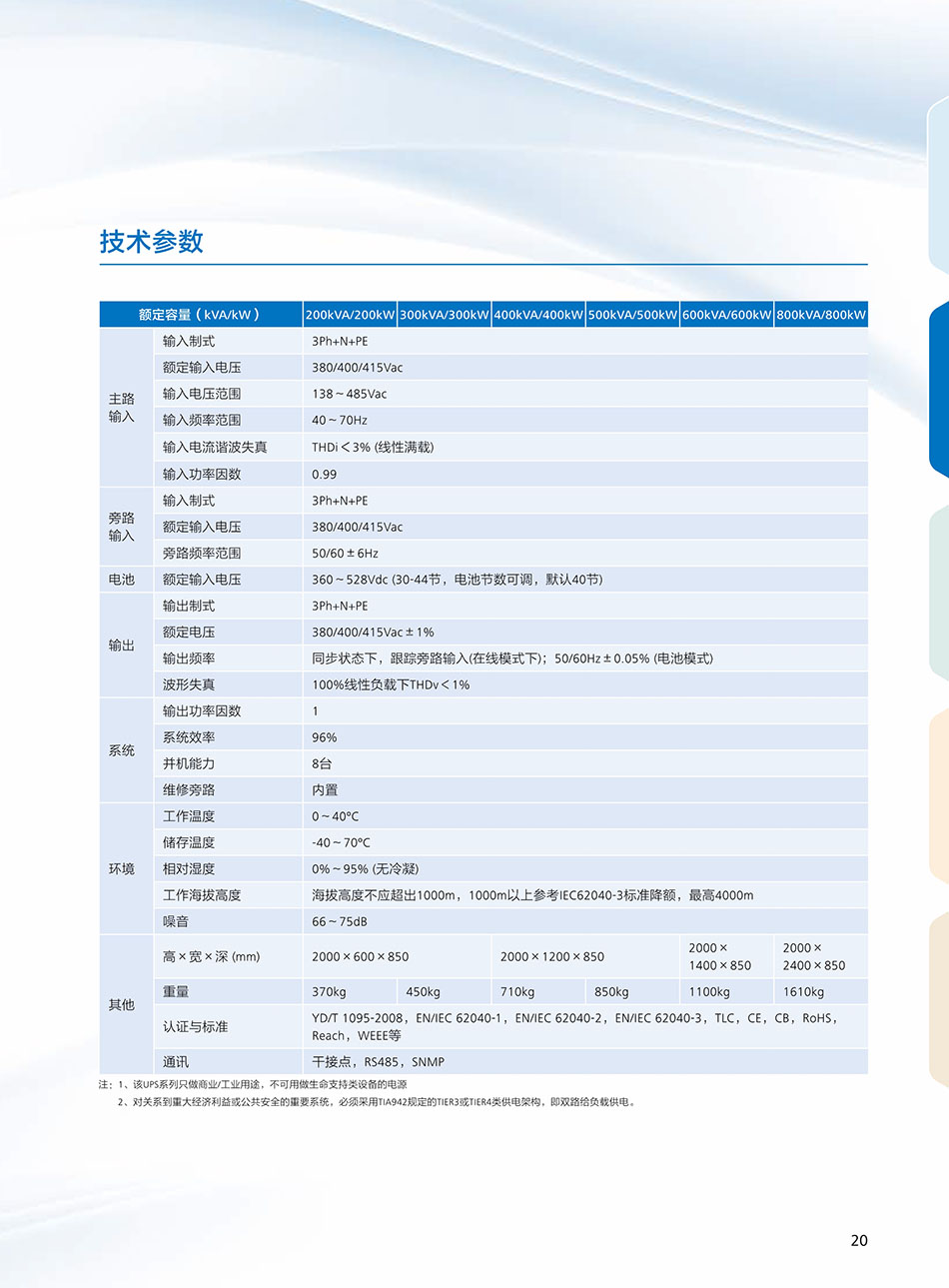 UPS5000-A-200-800KTTL、输入电压:380V、输出电压:380V、电池配置:铅酸蓄电池、华为UPS5000-A系列(30~120kVA)采用在线双变换技术,可全面消除各类电网问题,为客户提供稳定纯净的交流供电保护。UPS5000-A系列(UPS5000-A-200-800KTTL)关键部件冗余设计,机架塔式兼容设计,灵活易用;全数字控制技术,抗干扰能力强,保障UPS在恶劣工况下也可稳定输出。
